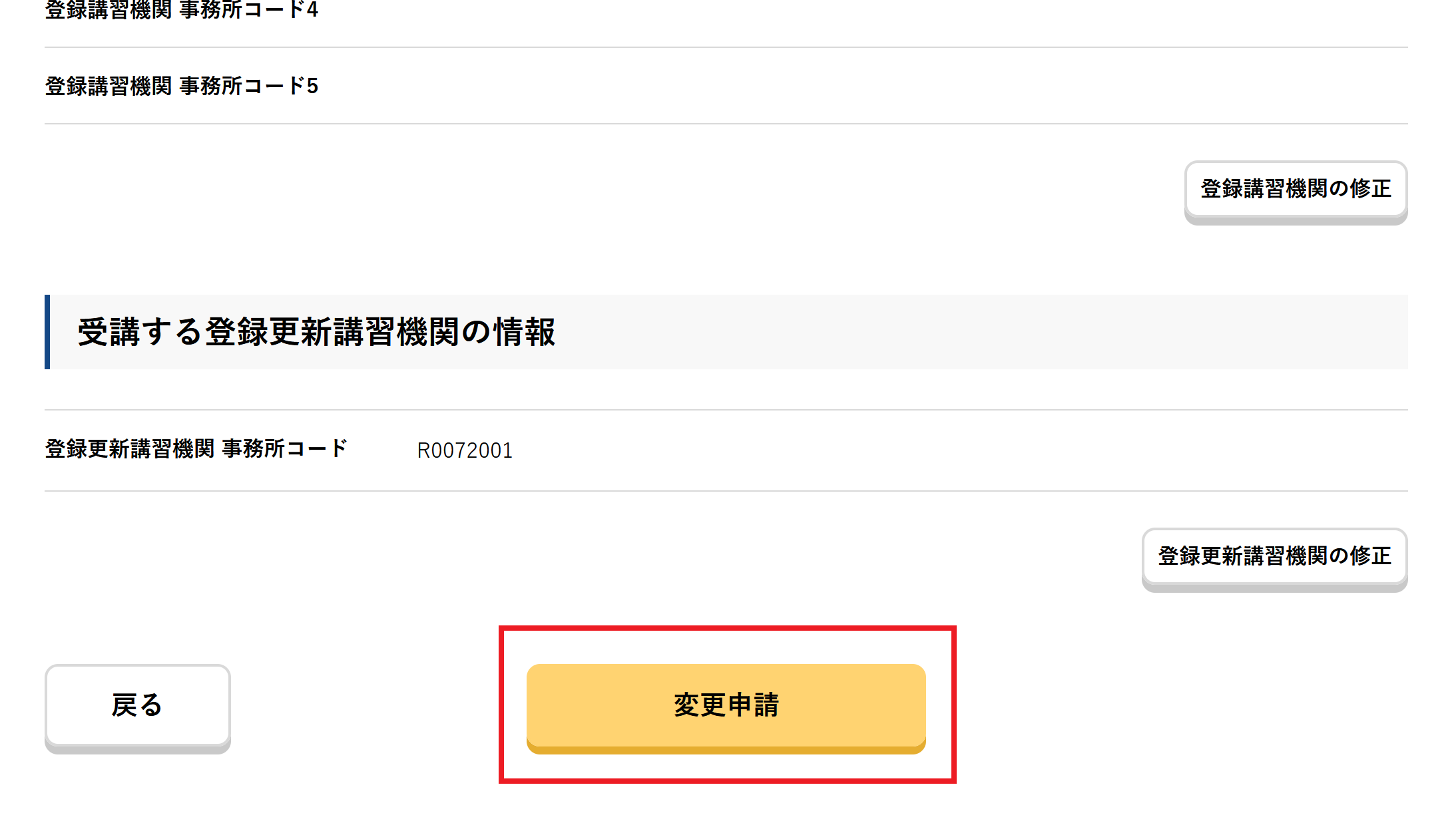 変更手続きにつきましては次項の「登録更新講習機関の追加」をご参照ください。